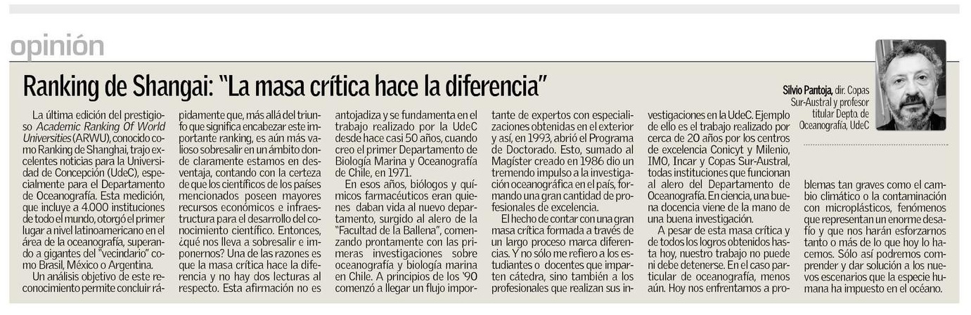 Ranking de Shangai: «La masa crítica hace la diferencia» 24 agosto, 2018 | Medios externos . Noticias COPAS Sur-Austral